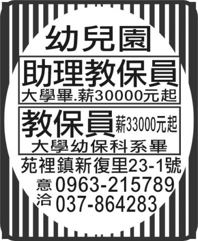 人事求才、信用貸款、店面頂讓、開店優惠、生活娛樂、….分類廣告。