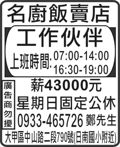 人事求才、信用貸款、店面頂讓、開店優惠、生活娛樂、….分類廣告。