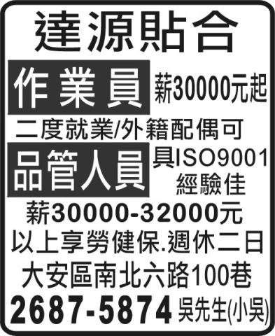 人事求才、信用貸款、店面頂讓、開店優惠、生活娛樂、….分類廣告。