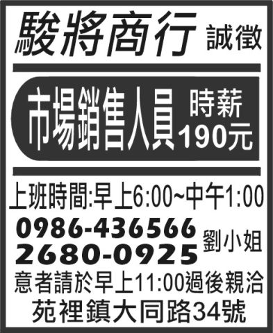 人事求才、信用貸款、店面頂讓、開店優惠、生活娛樂、….分類廣告。