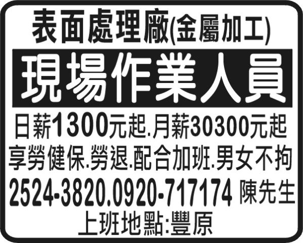 人事求才、信用貸款、店面頂讓、開店優惠、生活娛樂、….分類廣告。
