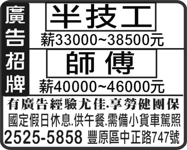 人事求才、信用貸款、店面頂讓、開店優惠、生活娛樂、….分類廣告。