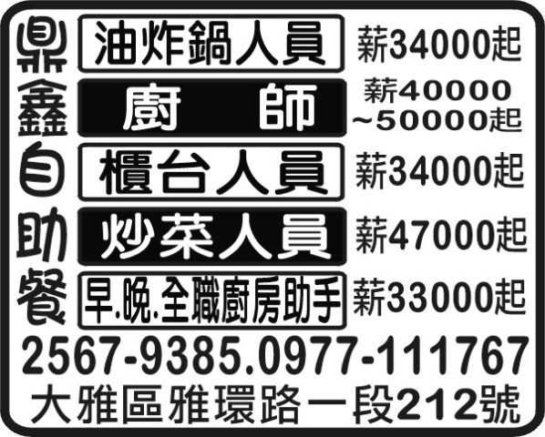 人事求才、信用貸款、店面頂讓、開店優惠、生活娛樂、….分類廣告。