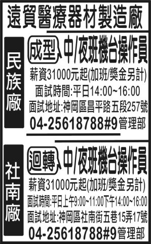 人事求才、信用貸款、店面頂讓、開店優惠、生活娛樂、….分類廣告。