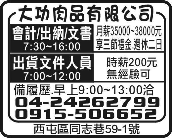 人事求才、信用貸款、店面頂讓、開店優惠、生活娛樂、….分類廣告。