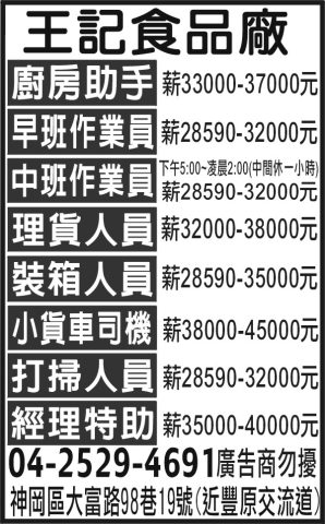 人事求才、信用貸款、店面頂讓、開店優惠、生活娛樂、….分類廣告。