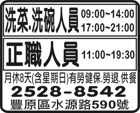 洗菜.洗碗人員 正職人員
