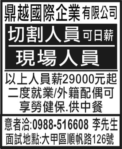 人事求才、信用貸款、店面頂讓、開店優惠、生活娛樂、….分類廣告。