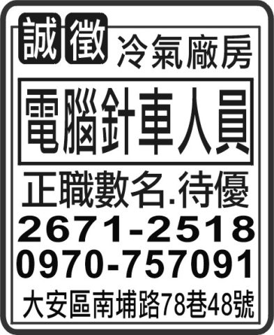人事求才、信用貸款、店面頂讓、開店優惠、生活娛樂、….分類廣告。