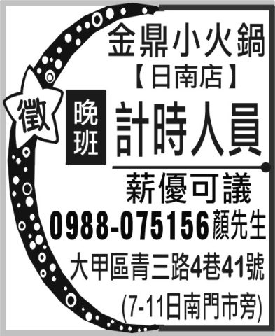人事求才、信用貸款、店面頂讓、開店優惠、生活娛樂、….分類廣告。