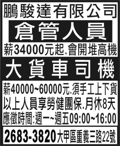 人事求才、信用貸款、店面頂讓、開店優惠、生活娛樂、….分類廣告。