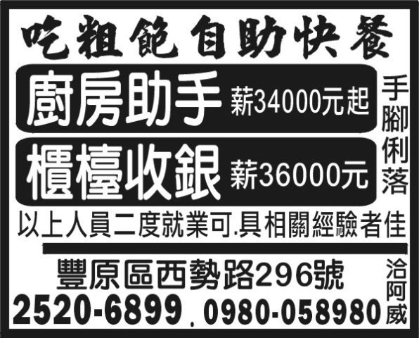 人事求才、信用貸款、店面頂讓、開店優惠、生活娛樂、….分類廣告。