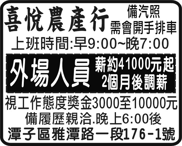 人事求才、信用貸款、店面頂讓、開店優惠、生活娛樂、….分類廣告。