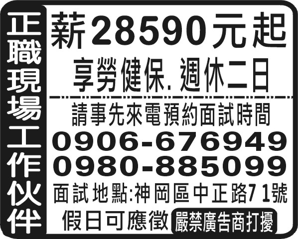 人事求才、信用貸款、店面頂讓、開店優惠、生活娛樂、….分類廣告。