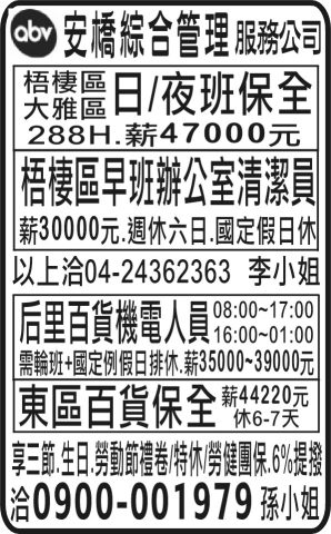 梧棲區大雅區日/夜班保全