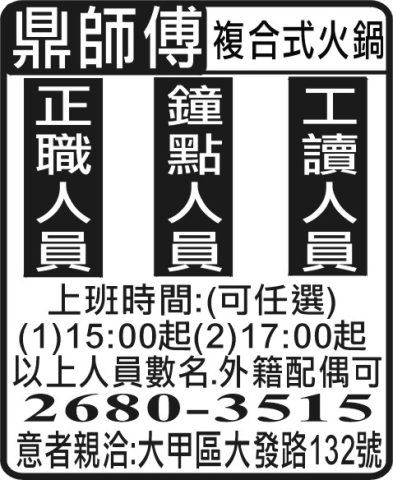 人事求才、信用貸款、店面頂讓、開店優惠、生活娛樂、….分類廣告。