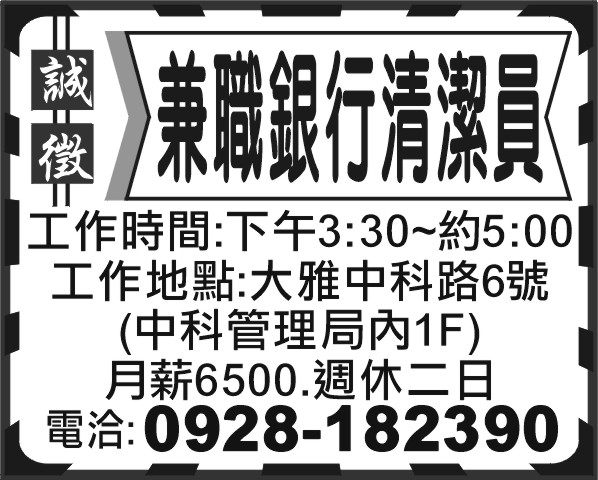 兼職銀行清潔員