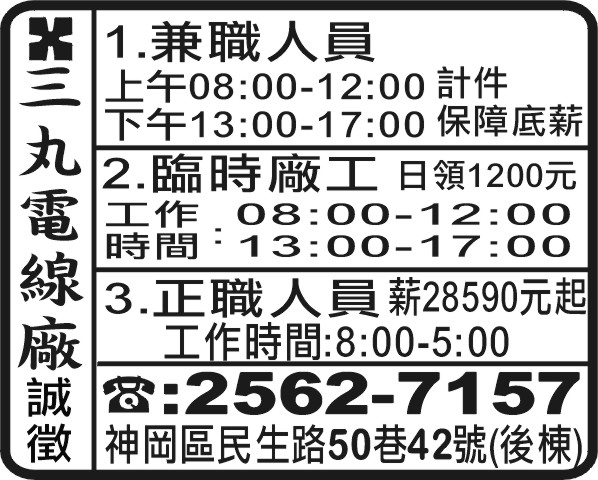人事求才、信用貸款、店面頂讓、開店優惠、生活娛樂、….分類廣告。