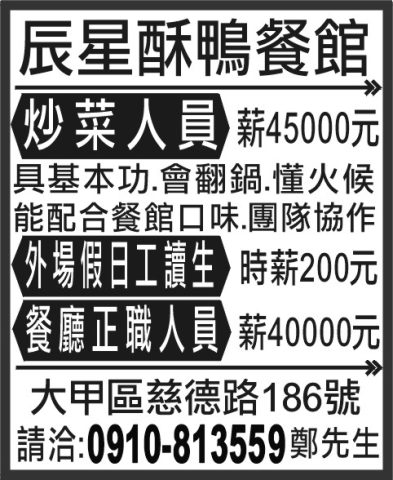 人事求才、信用貸款、店面頂讓、開店優惠、生活娛樂、….分類廣告。