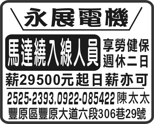 人事求才、信用貸款、店面頂讓、開店優惠、生活娛樂、….分類廣告。