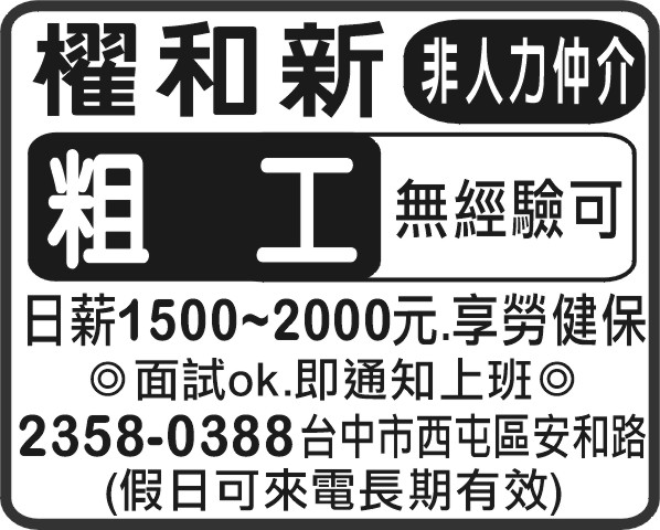 人事求才、信用貸款、店面頂讓、開店優惠、生活娛樂、….分類廣告。