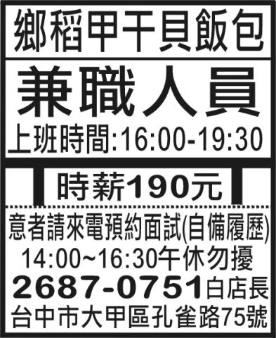 人事求才、信用貸款、店面頂讓、開店優惠、生活娛樂、….分類廣告。