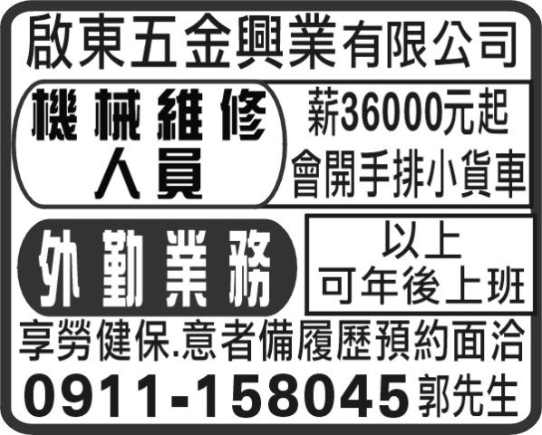 人事求才、信用貸款、店面頂讓、開店優惠、生活娛樂、….分類廣告。