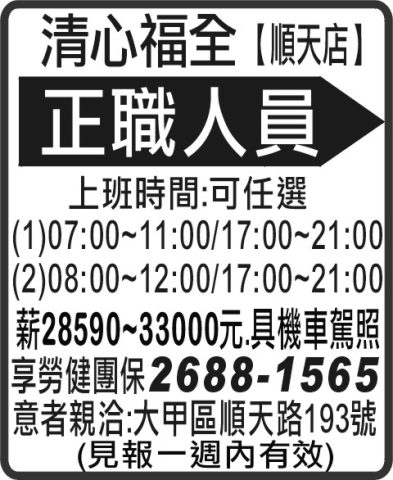 人事求才、信用貸款、店面頂讓、開店優惠、生活娛樂、….分類廣告。