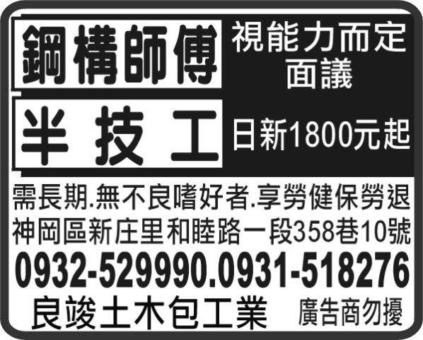 人事求才、信用貸款、店面頂讓、開店優惠、生活娛樂、….分類廣告。