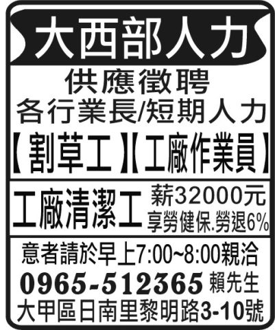 人事求才、信用貸款、店面頂讓、開店優惠、生活娛樂、….分類廣告。