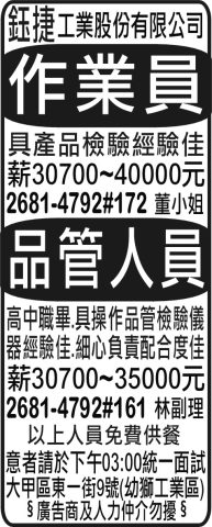 人事求才、信用貸款、店面頂讓、開店優惠、生活娛樂、….分類廣告。