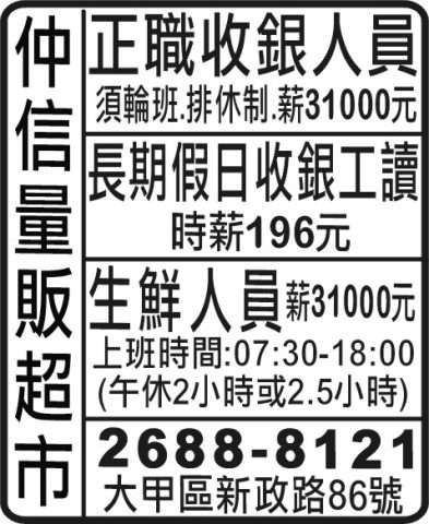 人事求才、信用貸款、店面頂讓、開店優惠、生活娛樂、….分類廣告。