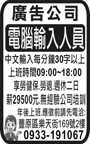 人事求才、信用貸款、店面頂讓、開店優惠、生活娛樂、….分類廣告。