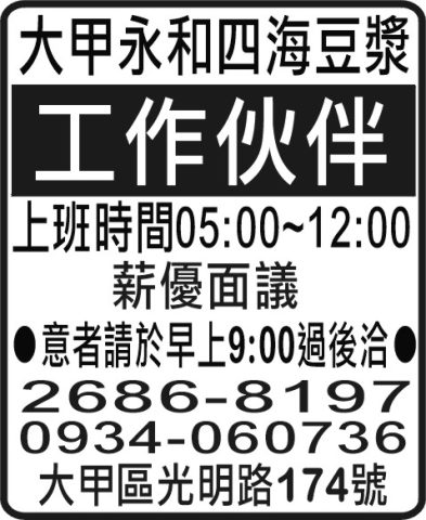 人事求才、信用貸款、店面頂讓、開店優惠、生活娛樂、….分類廣告。