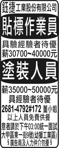 人事求才、信用貸款、店面頂讓、開店優惠、生活娛樂、….分類廣告。