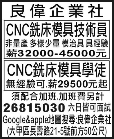CNC銑床模具學徒
