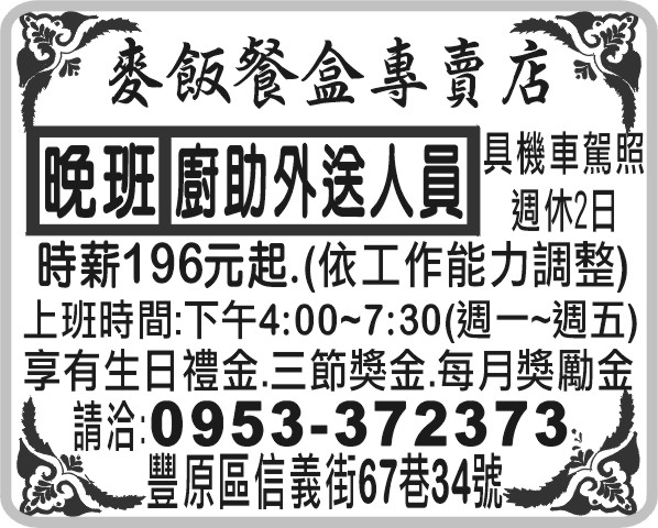 人事求才、信用貸款、店面頂讓、開店優惠、生活娛樂、….分類廣告。