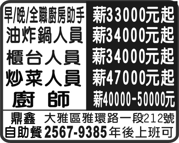 人事求才、信用貸款、店面頂讓、開店優惠、生活娛樂、….分類廣告。