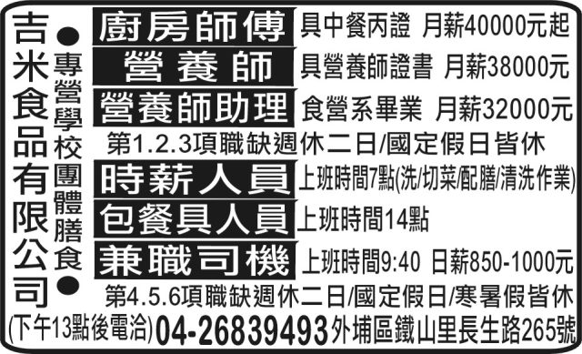 人事求才、信用貸款、店面頂讓、開店優惠、生活娛樂、….分類廣告。