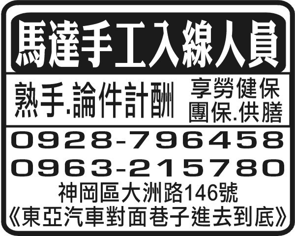 人事求才、信用貸款、店面頂讓、開店優惠、生活娛樂、….分類廣告。