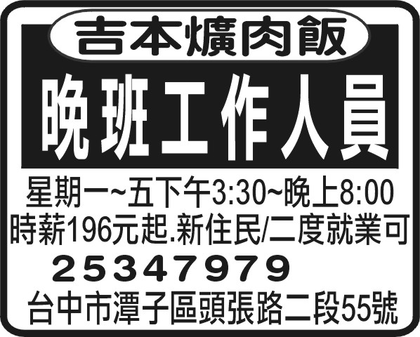 人事求才、信用貸款、店面頂讓、開店優惠、生活娛樂、….分類廣告。
