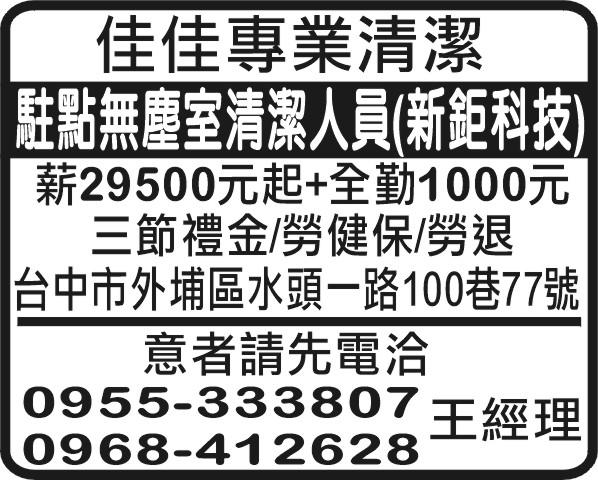 駐點無塵室清潔人員(新鉅科技)