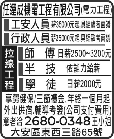 人事求才、信用貸款、店面頂讓、開店優惠、生活娛樂、….分類廣告。