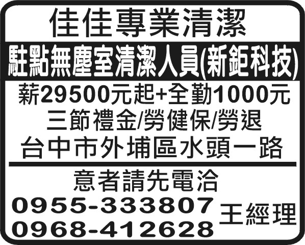 駐點無塵室清潔人員(新鉅科技)