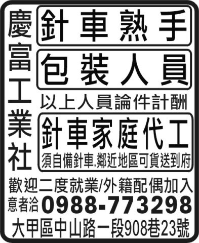 人事求才、信用貸款、店面頂讓、開店優惠、生活娛樂、….分類廣告。
