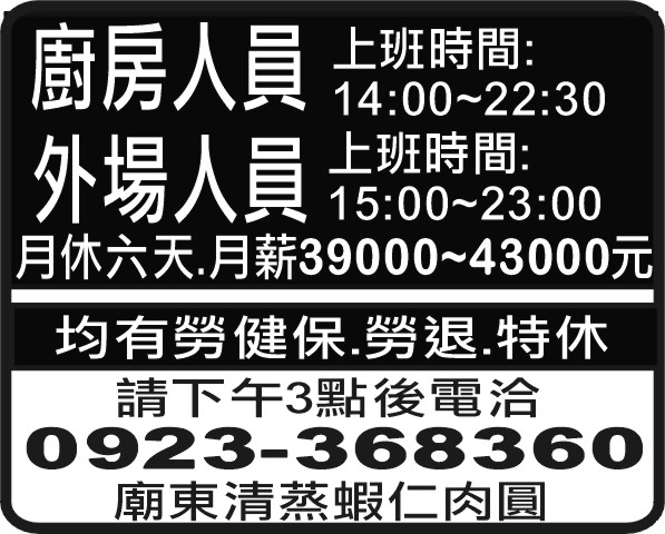 人事求才、信用貸款、店面頂讓、開店優惠、生活娛樂、….分類廣告。