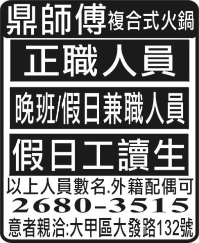 人事求才、信用貸款、店面頂讓、開店優惠、生活娛樂、….分類廣告。