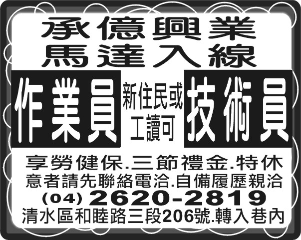 人事求才、信用貸款、店面頂讓、開店優惠、生活娛樂、….分類廣告。
