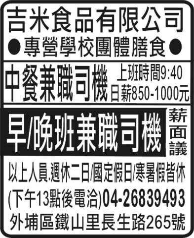 中餐兼職司機