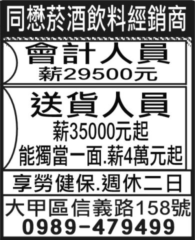 人事求才、信用貸款、店面頂讓、開店優惠、生活娛樂、….分類廣告。